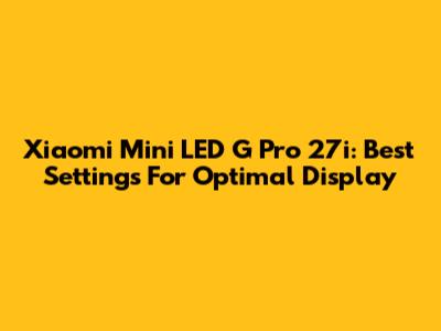 Xiaomi Mini LED G Pro 27i: Best Settings For Optimal Display
