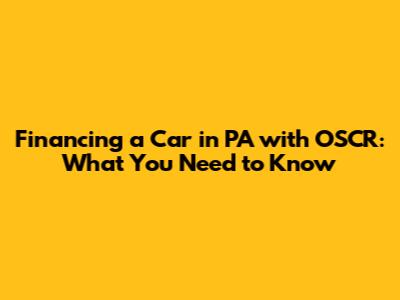 The Role of OSCR in Car Financing in Pennsylvania