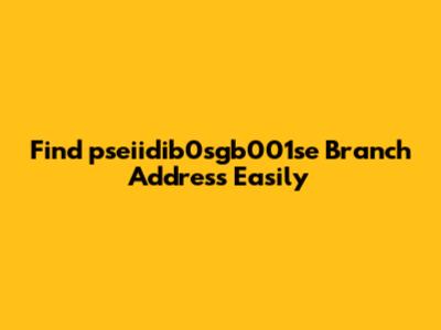 Are you trying to locate the pseiidib0sgb001se branch address? Finding the correct branch address can sometimes be a hassle, but don't worry, we've got you covered. Whether you need to visit the branch in person, send mail, or simply update your records, having the accurate address is essential. In this article, we will guide you through the various methods to find the exact address for the pseiidib0sgb001se branch. Let's dive in and make this process as smooth as possible for you!