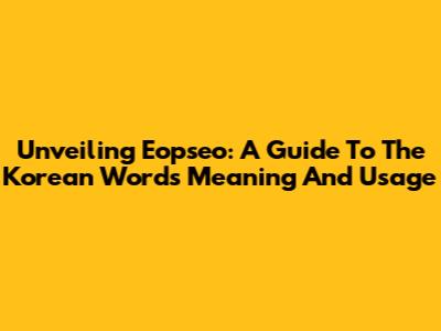 Unveiling Eopseo: A Guide To The Korean Word's Meaning And Usage
