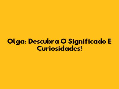 Olga: Descubra O Significado E Curiosidades!