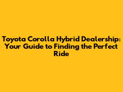 Navigating the Toyota Corolla Hybrid Dealership: Your Path to a Seamless Purchase