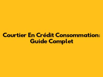 Courtier En Crédit Consommation: Guide Complet