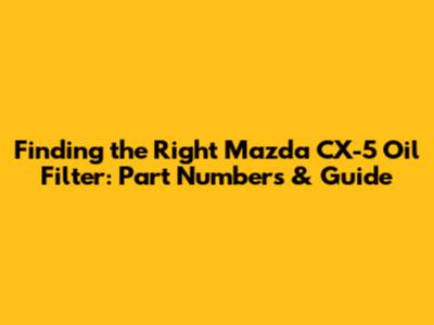 Decoding Mazda CX-5 Oil Filter Part Numbers