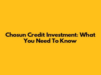 Chosun Credit Investment: What You Need To Know