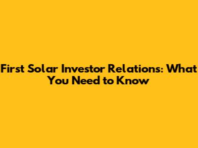 Key Components of First Solar's Investor Relations