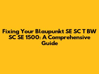 Understanding the Blaupunkt SE SC T BW SC SE 1500