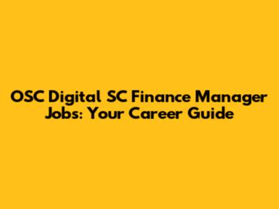 OSC Digital SC Finance Manager Jobs: Your Career Guide