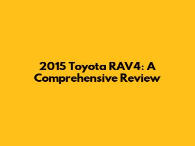 2015 Toyota RAV4: A Comprehensive Review