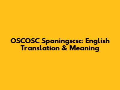 OSCOSC Spaningscsc: English Translation & Meaning
