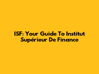 ISF: Your Guide To Institut Supérieur De Finance