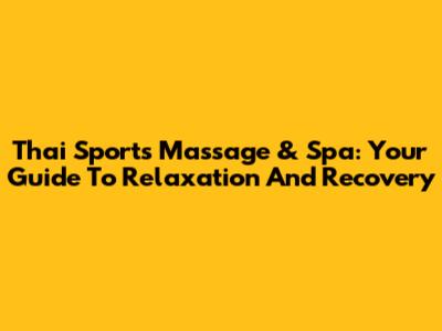 Thai Sports Massage & Spa: Your Guide To Relaxation And Recovery
