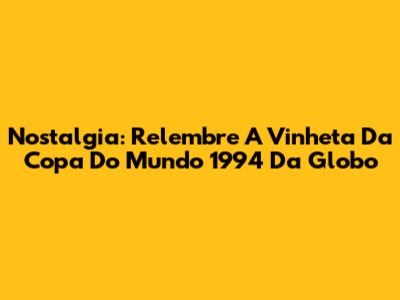 Nostalgia: Relembre A Vinheta Da Copa Do Mundo 1994 Da Globo