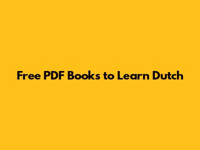 Where to Find Free PDF Books for Learning Dutch