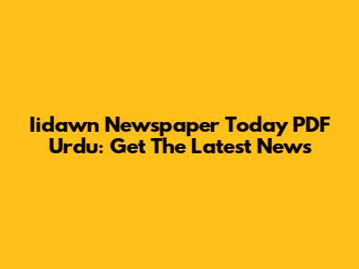 Iidawn Newspaper Today PDF Urdu: Get The Latest News