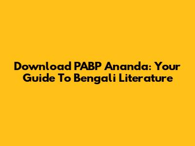 Download PABP Ananda: Your Guide To Bengali Literature