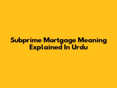 Subprime Mortgage Meaning Explained In Urdu