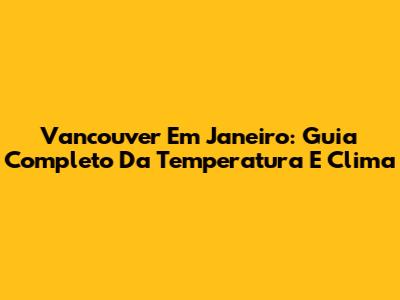 Vancouver Em Janeiro: Guia Completo Da Temperatura E Clima