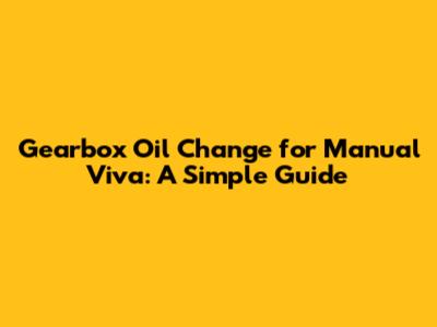 So, changing your gearbox oil is a simple and relatively inexpensive way to keep your Viva's transmission in tip-top shape and avoid these potential problems. Think of it as a regular maintenance task, just like changing your engine oil.