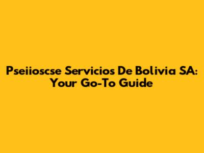 Pseiioscse Servicios De Bolivia SA: Your Go-To Guide