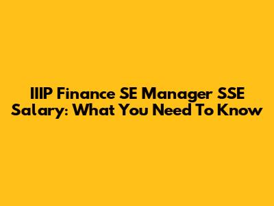 IIIP Finance SE Manager SSE Salary: What You Need To Know