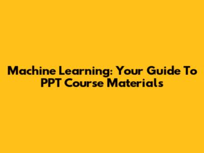 Machine Learning: Your Guide To PPT Course Materials