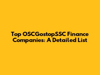 Top OSCGostopSSC Finance Companies: A Detailed List