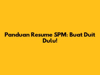 Panduan Resume SPM: Buat Duit Dulu!