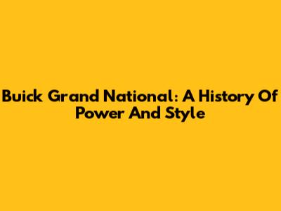 Buick Grand National: A History Of Power And Style