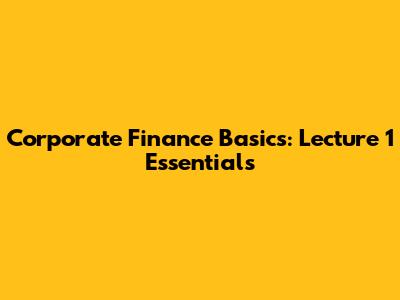 Corporate Finance Basics: Lecture 1 Essentials
