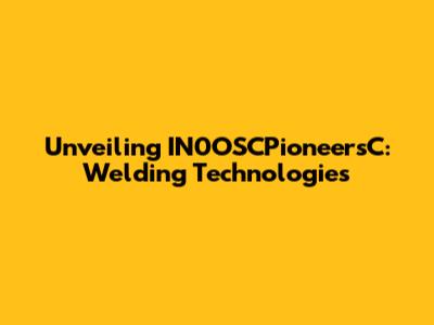 Unveiling IN0OSCPioneersC: Welding Technologies
