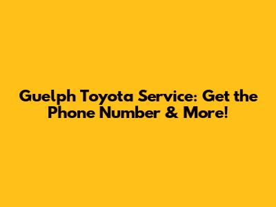 Are you looking for the Guelph Toyota service phone number? You've landed in the right spot! Getting your Toyota serviced in Guelph should be a breeze, and having the right contact information is the first step. In this article, we'll provide you with that crucial phone number, but we'll also dive deeper into what Guelph Toyota offers in terms of service, why regular maintenance is so important, and how to make the most of your service experience. We will guide you through everything you need to know, from scheduling an appointment to understanding the different types of services available and even exploring alternative service options. Whether you're a long-time Toyota owner or new to the brand, this comprehensive guide is designed to make your service visits as smooth and efficient as possible. Let's face it, car maintenance isn't always the most thrilling topic, but it's a necessary part of keeping your vehicle running smoothly and safely. So, buckle up, and let's get started on this journey to ensure your Toyota stays in top-notch condition! We aim to equip you with all the essential details, ensuring that you have a hassle-free experience whenever you need to contact Guelph Toyota for your servicing needs. We understand that your time is valuable, and we want to make sure you have all the information you need right at your fingertips.