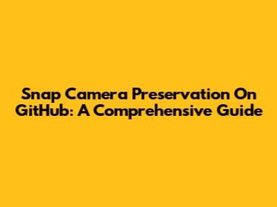 Snap Camera Preservation On GitHub: A Comprehensive Guide