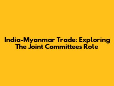 India-Myanmar Trade: Exploring The Joint Committee's Role