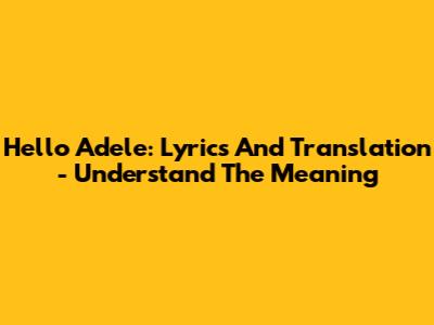 Hello Adele: Lyrics And Translation - Understand The Meaning