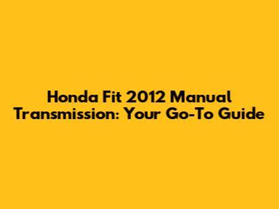Honda Fit 2012 Manual Transmission: Your Go-To Guide