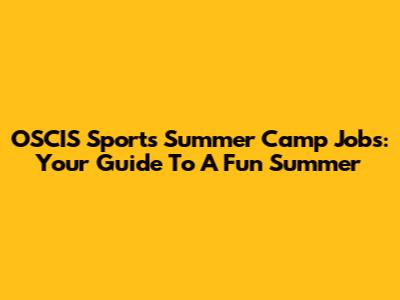 OSCIS Sports Summer Camp Jobs: Your Guide To A Fun Summer