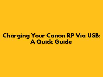 Charging Your Canon RP Via USB: A Quick Guide