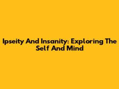 Ipseity And Insanity: Exploring The Self And Mind