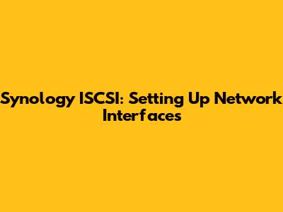 Synology ISCSI: Setting Up Network Interfaces