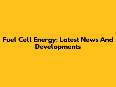 Fuel Cell Energy: Latest News And Developments