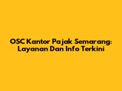 OSC Kantor Pajak Semarang: Layanan Dan Info Terkini