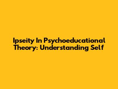 Ipseity In Psychoeducational Theory: Understanding Self