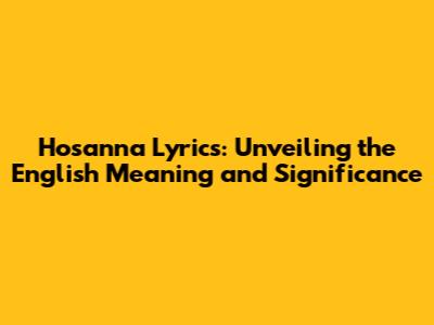 Hey everyone! Ever found yourself humming along to a song and just loving the vibe, but you're not entirely sure what the words mean? Well, today, we're diving deep into the Hosanna lyrics! Specifically, we'll be breaking down the English translation and the rich meaning behind this powerful word. Let's get started, shall we? This song has touched the hearts of many, and understanding its lyrics can deepen our appreciation for its message. It's more than just a catchy tune; it's a song filled with hope, praise, and a call for divine help. So, grab your headphones, get comfy, and let's explore the beautiful world of Hosanna lyrics!