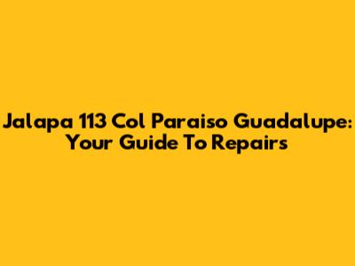 Jalapa 113 Col Paraiso Guadalupe: Your Guide To Repairs