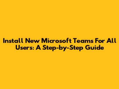 Install New Microsoft Teams For All Users: A Step-by-Step Guide