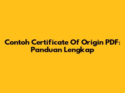 Contoh Certificate Of Origin PDF: Panduan Lengkap