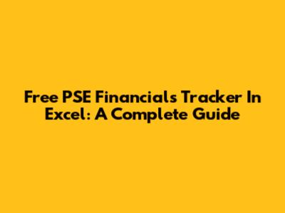 Free PSE Financials Tracker In Excel: A Complete Guide