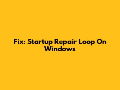 Fix: Startup Repair Loop On Windows
