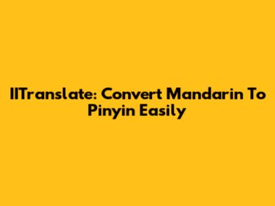 IITranslate: Convert Mandarin To Pinyin Easily